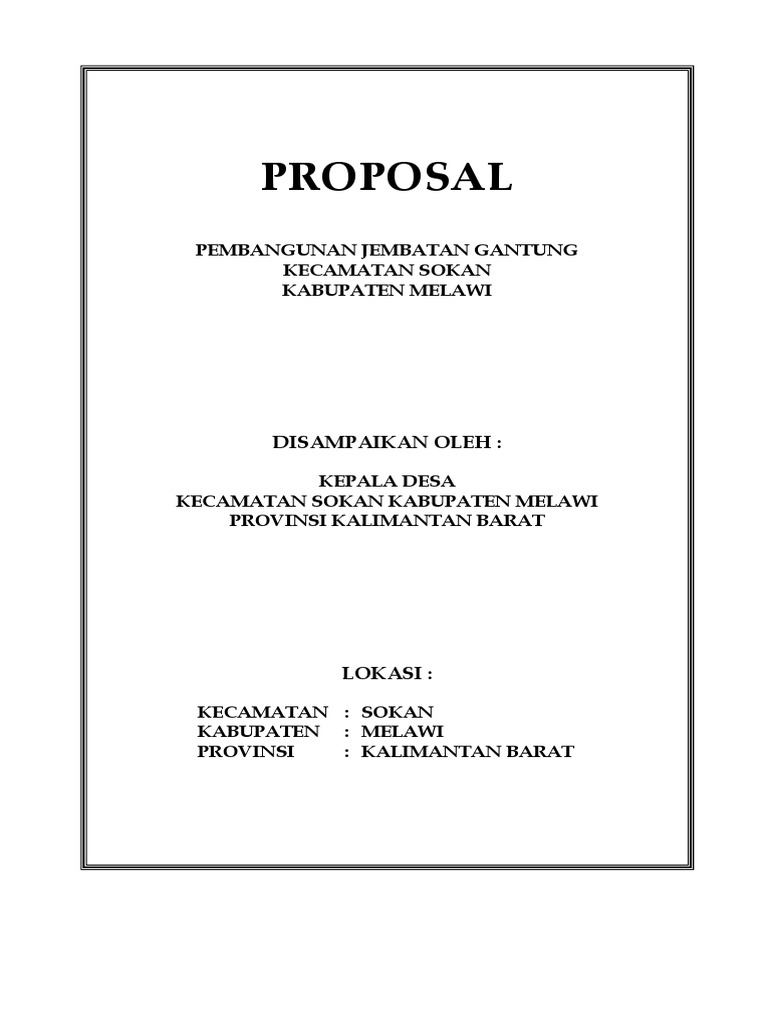 Proposal Pembangunan Jembatan : Proposal Jembatan Kepala Desa Kab Melawi / Contoh proposal pembangunan jalan aspal.. Total panjang jalan 500 m dan jembatan 30. Panduan membuat proposal pembangunan masjid contoh proposal pembangunan masjid. Dalam rangka mewujudkan kebutuhan masyarakat akan adanya jembatan penhubung dari rt 06 rw 06 dusun bada'an, kamiâ. Lebih baik lagi pengurus masjid berkoordinasi mengajukan proposal dana ke pemerintahan. Minggu, 5 oktober demikianlah proposal kegiatan pembuatan jembatan antar desa palapa dan desa gayamsari diatas sungai.